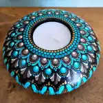 Thank you for stopping by to check out my work! Below you will find four galleries, each one offering a sampling of my work in 4 areas: My original Art Stones, Tea Light Holders, Round Mandala panels, and the 4th gallery holds a variety of smaller items. Use the navigation buttons, or click the center photo in a gallery to see a larger view, and navigate from there. I hope you enjoy!