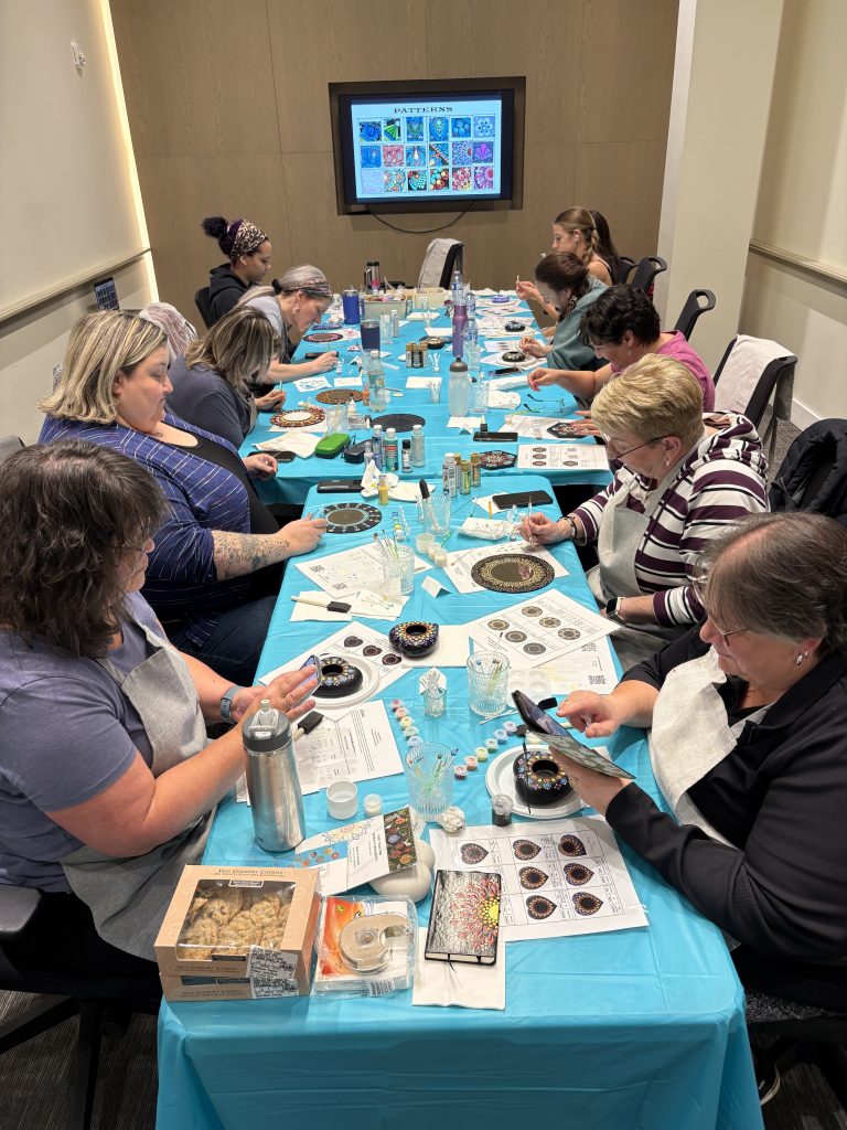 You’ll spend the first hour practicing and learning the techniques, and then you’ll move into about two hours of painting your own beautiful mandala stone—a piece you’ll feel proud to show off.